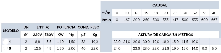| Centrífugas mono etapa | SI |