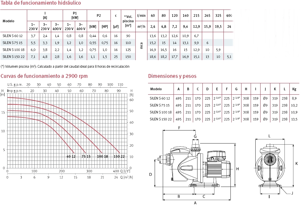Bomba piscina ESPA SILEN hasta 1,5 hp.