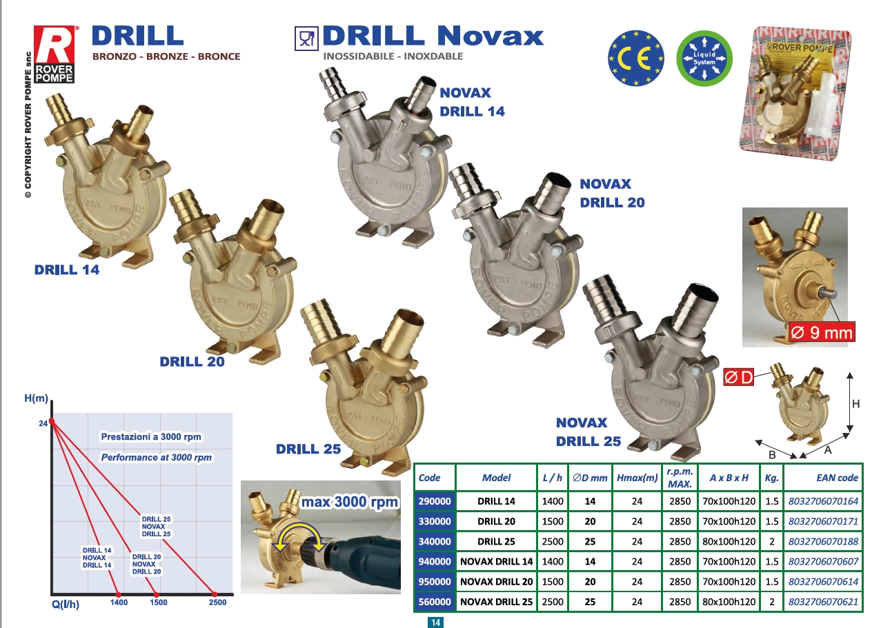 Amplia gama-los mejores precios de Bombas para Trasiego Bombas autoaspirantes de bronce con sujección cilíndrica de Ø 8/9 mm para taladro aptas para el trasvase de líquidos limpios como agua. vino, gasóleo, aceite-mezclas. donde no sea necesario respetar especificaciones particulares.