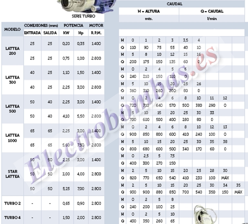 Electrobombas sanitarias LATTEA, Ver opciones.