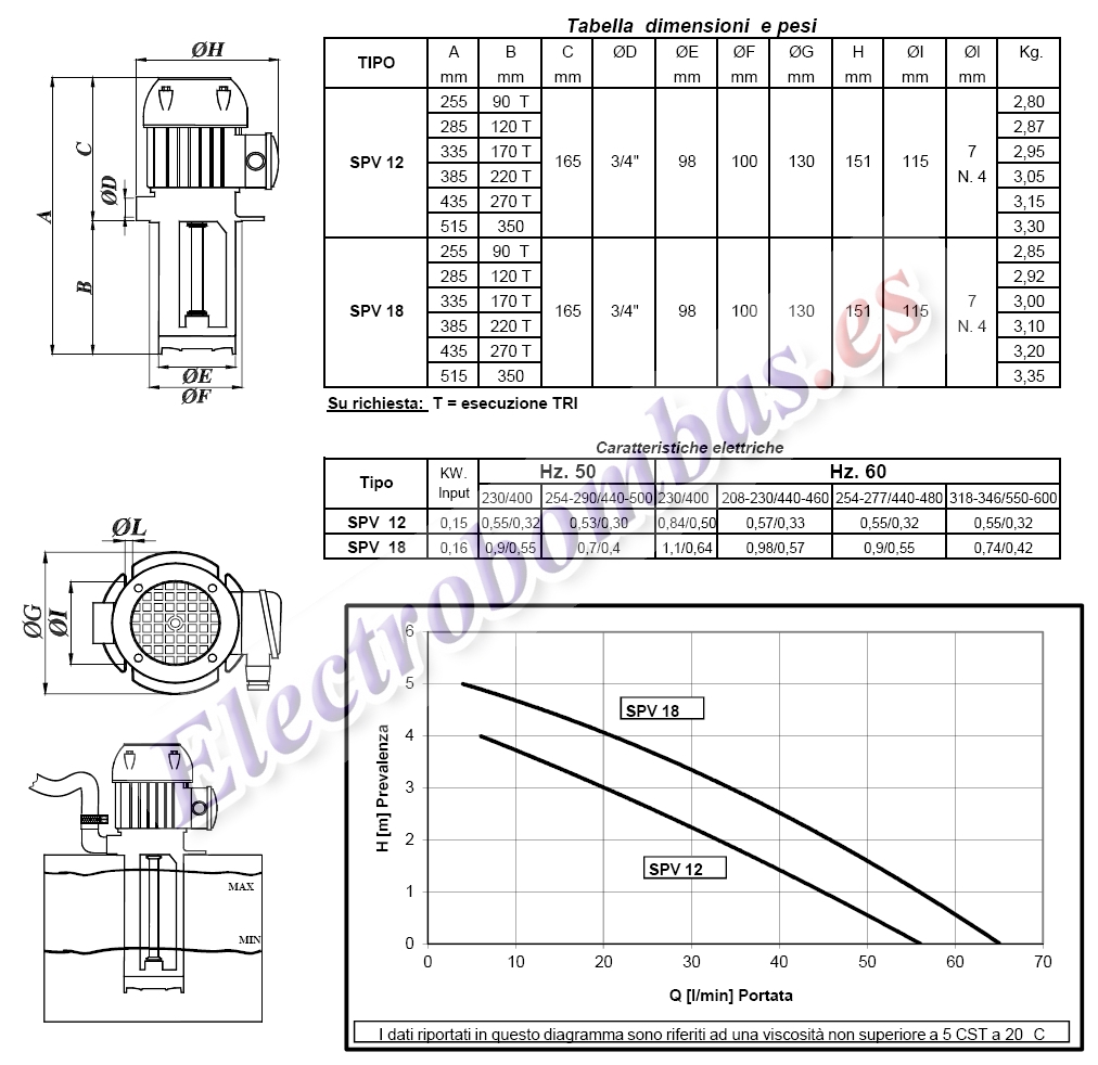 Electrobombas SACEMI Inmersión SPV, Ver opciones.