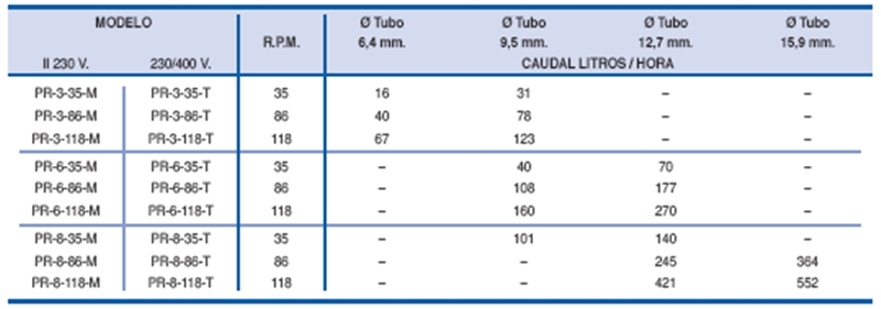 Electrobombas peristálticas serie PXR, Ver opciones.