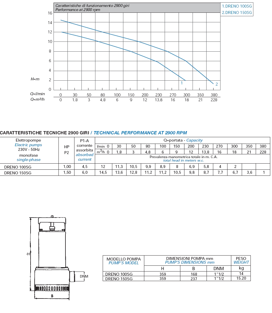 condensador incorporado. La versión monofásica viene dotada con boya de nivel. Los motores trifásicos