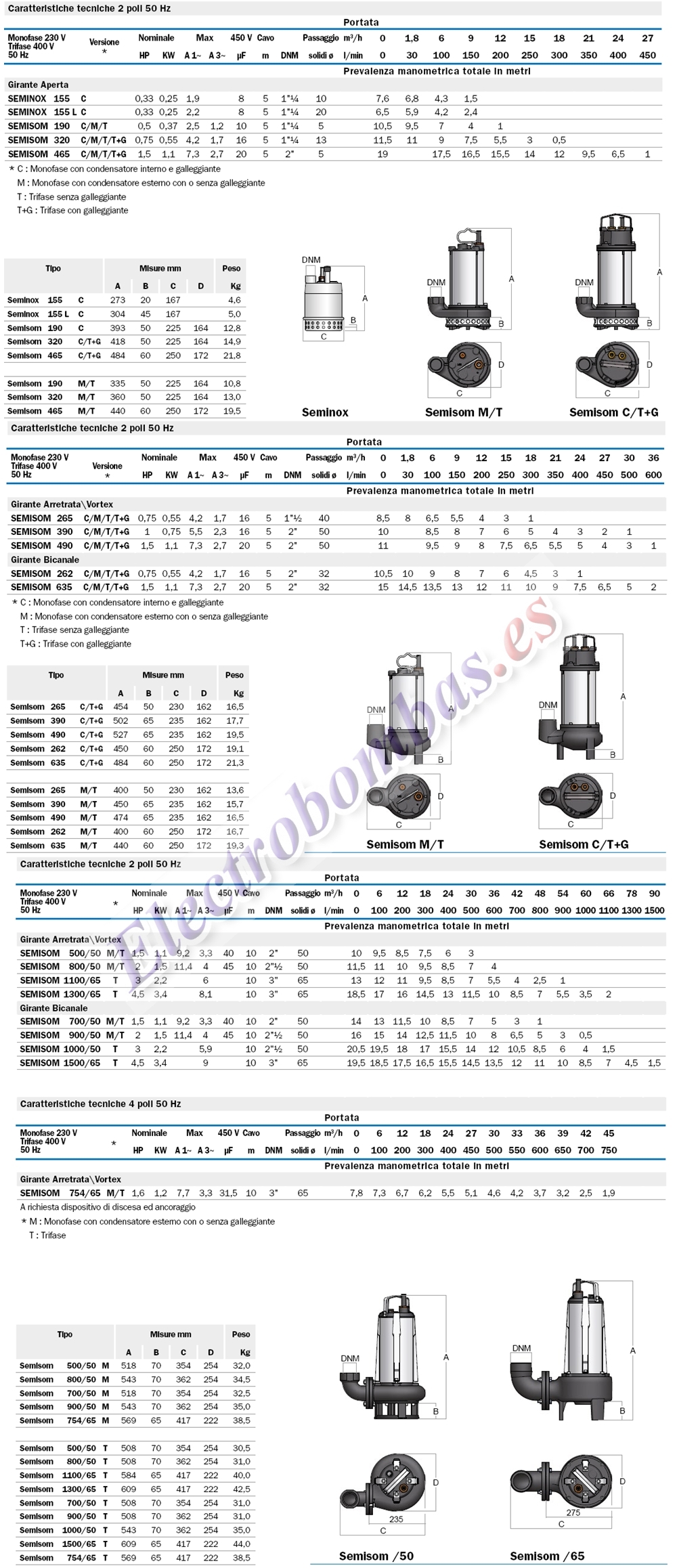 Amplia gama-los mejores precios de bombas de achique Bomba vortex SEMISOM utilizada para evacuación de aguas residuales con contenido de solidos-filamentos uso doméstico o industrial.