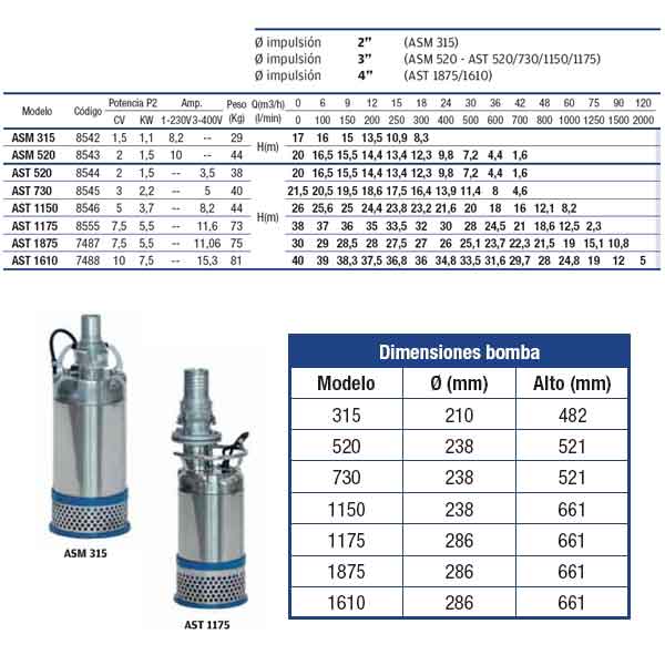 Bomba Achique ASM/AST hasta 10 HP 2000 l/min-40m.