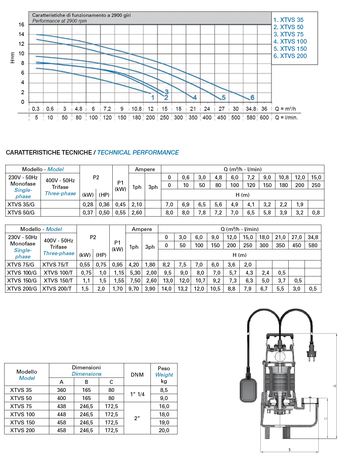 Bomba Residuales MATRA XTVS hasta 2 HP 580 l/min-14m.