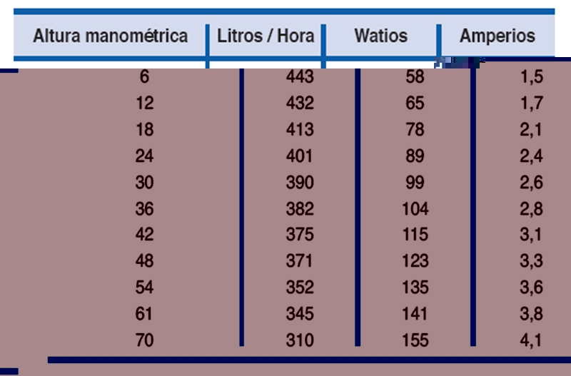 La bomba puede funcionar con dos paneles solares de 48 W con los que se obtienen 4 A de corriente.